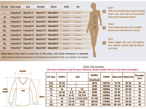 Real measurement of the style (the same as above chart 1, for non-English Countries), please always buy the goods according to the below and your real body size.