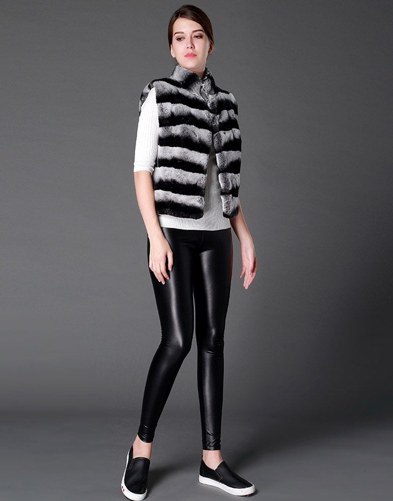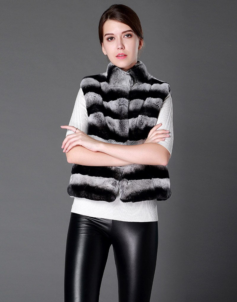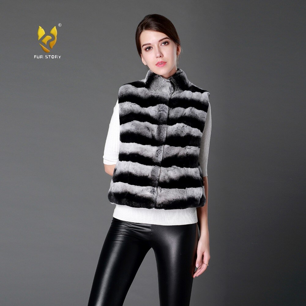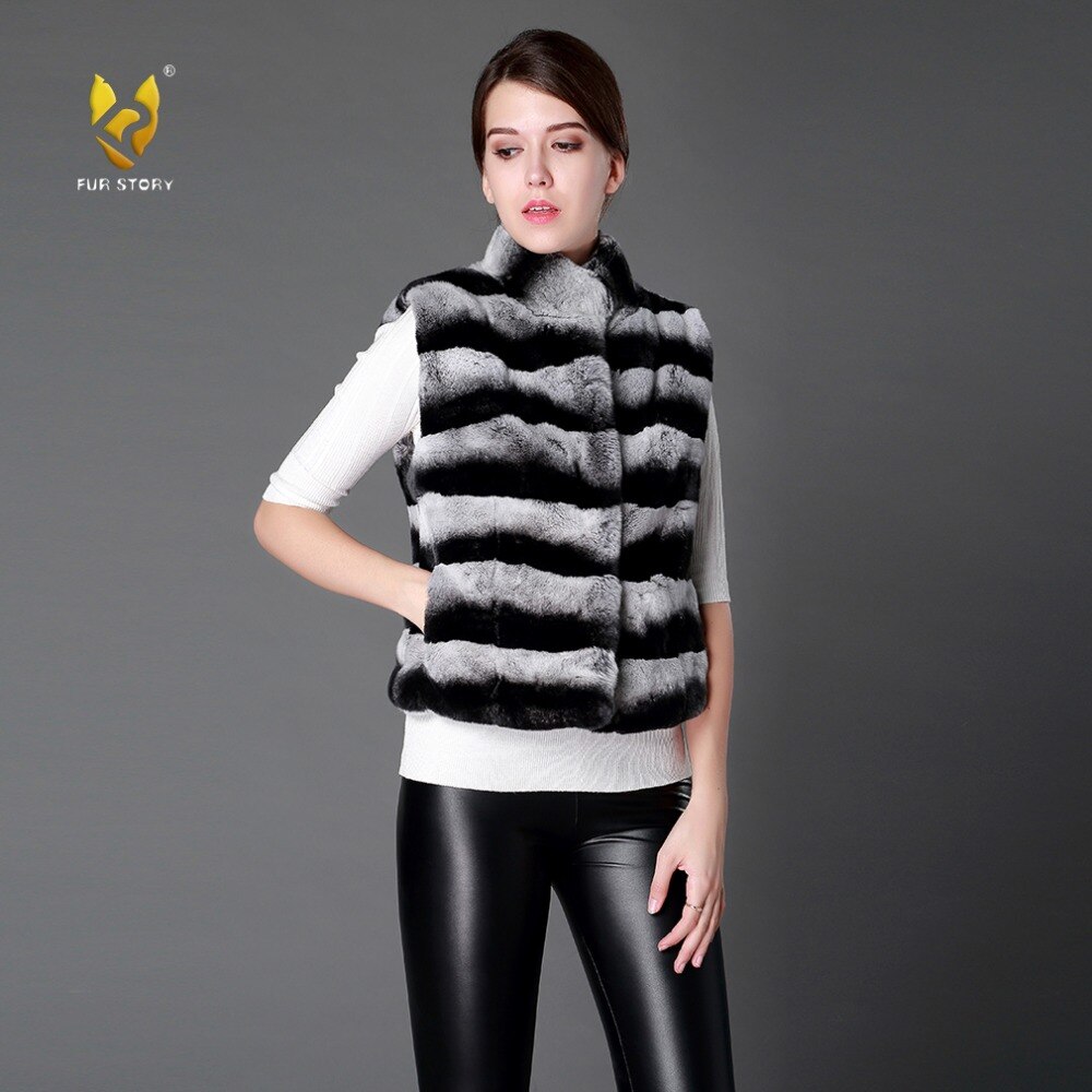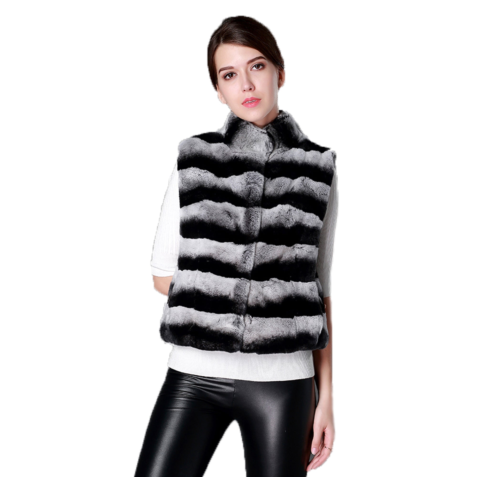 Women Vest Real Rex Rabbit Fur Waistcoat Chinchilla Color Natural Fur Vest Female 16206
