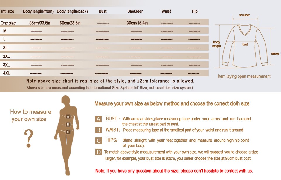 Real measurement of the style (the same as above chart 1, for non-English Countries), please always buy the goods according to the below and your real body size.