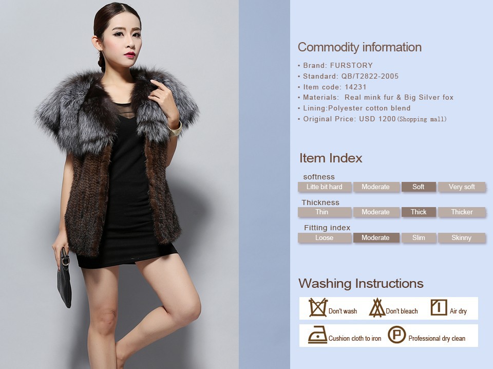 Women's Knitted Real Mink Fur Splicing Silver Fox Fur Vest Real Fur Vest Female