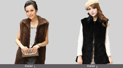 Women's Real Mink Fur Vest Diagonal Stripes Design Real Fur Vest Female 15225