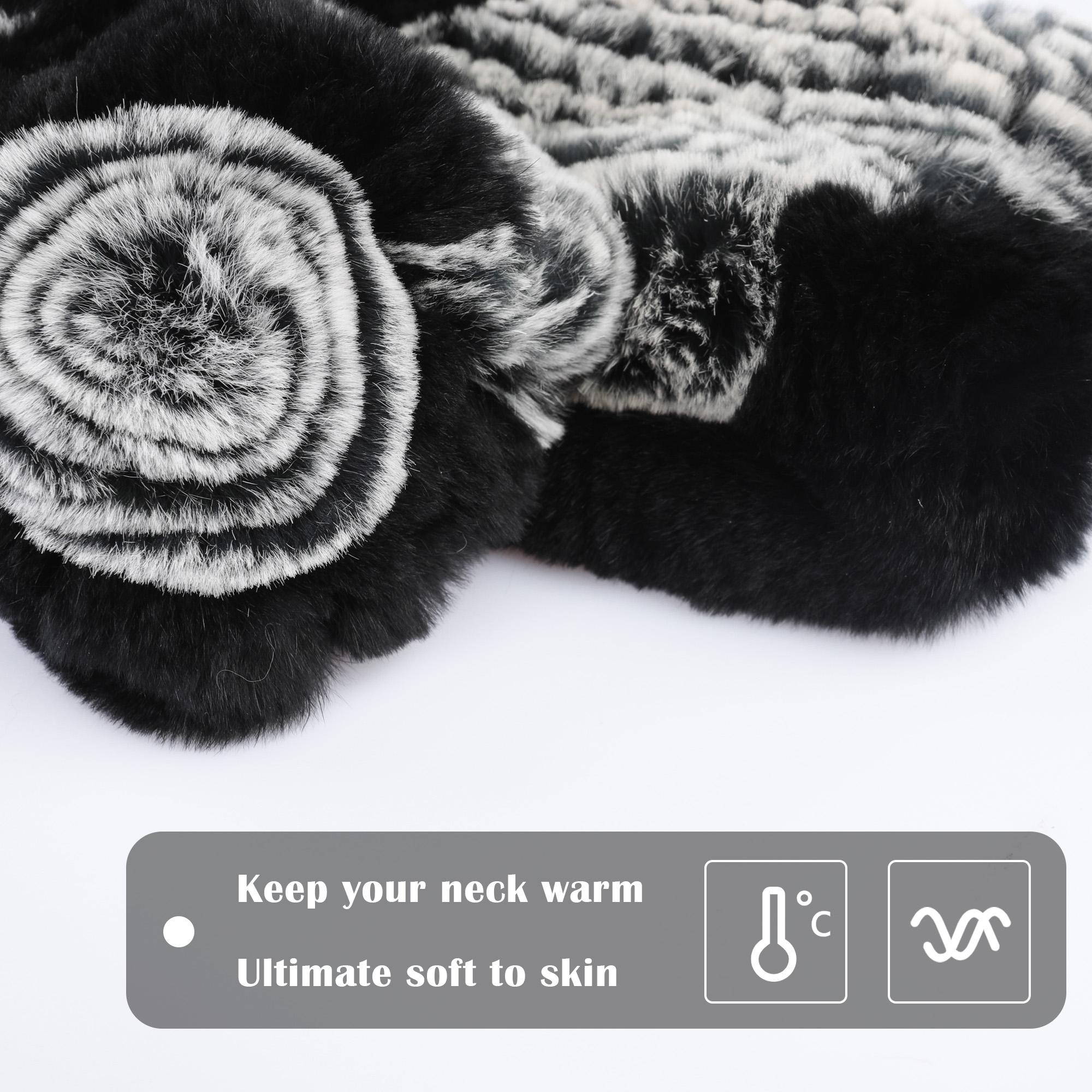 • Women's winter scarf:Our women fur scarf used real rex rabbit fur.Indulge in nature’s most luxurious fur and with its velvety softness.This fur scarves can easily adapt to your style and help you to stand out in a crowd.