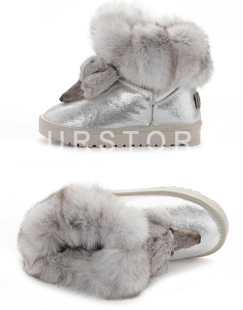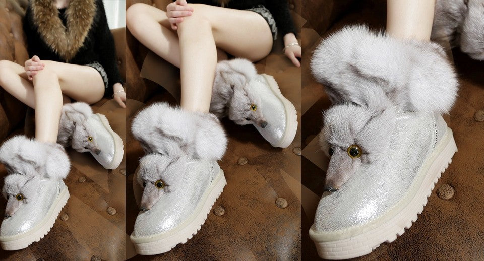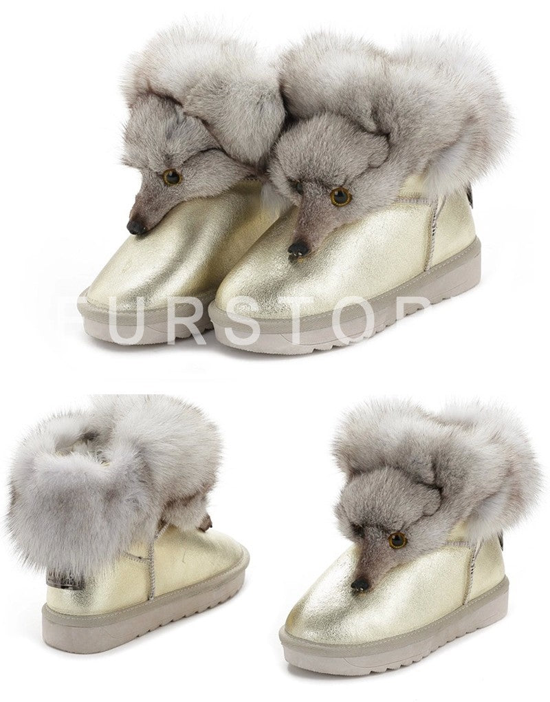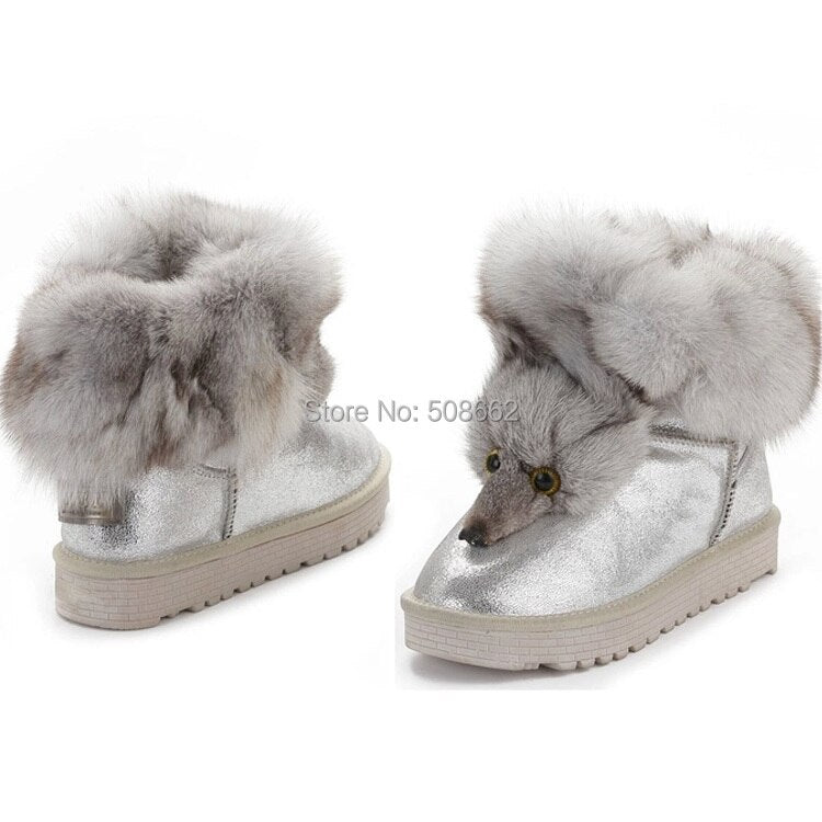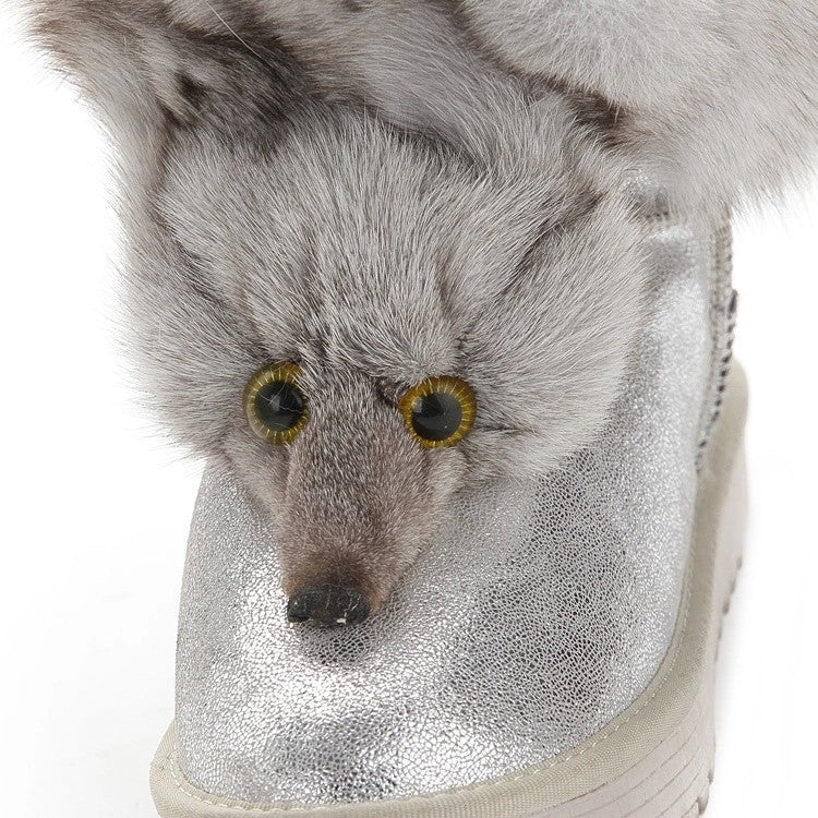 Winter Genuine Cow Leather Shoes Snow Boots Real Fox Fur Warmer Increased Women Boots Shoes FS14901