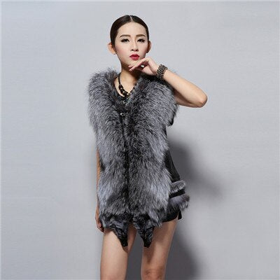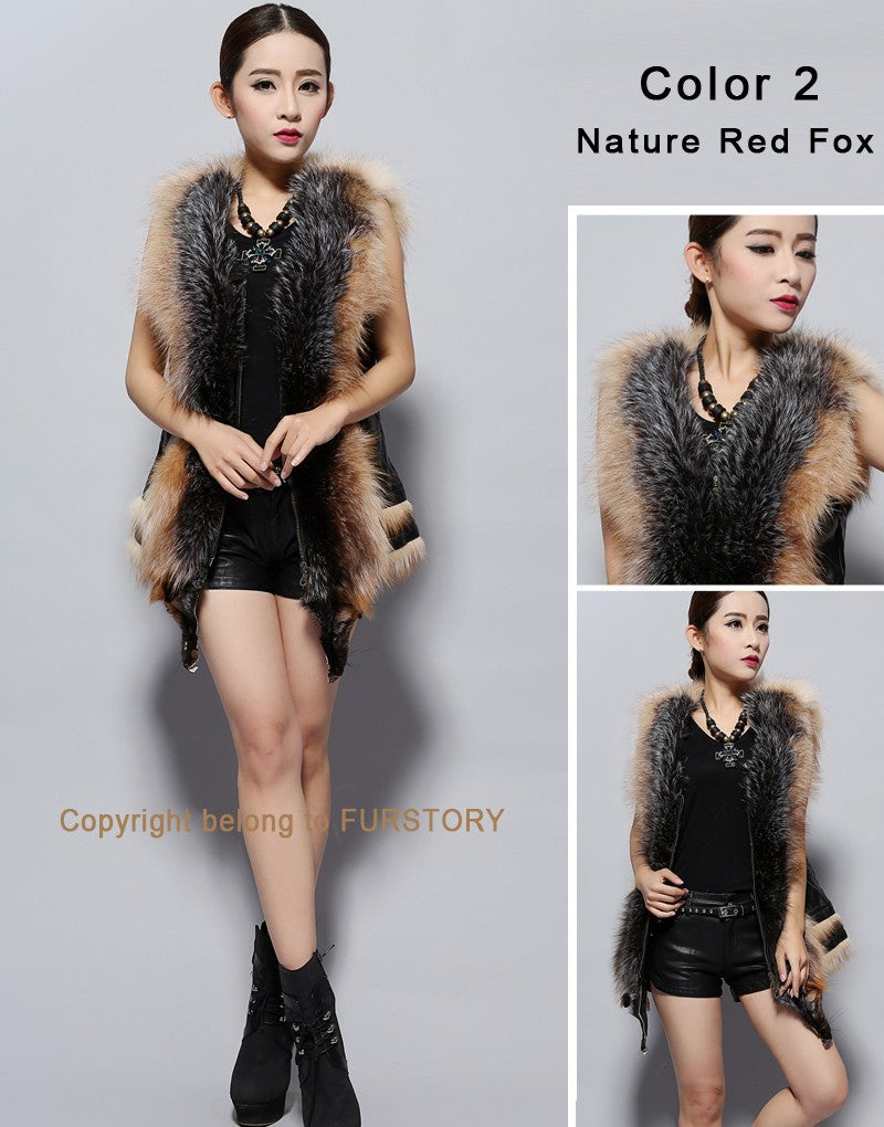 Women's Natural Fox Fur Vest with Genuine Sheep Leather Back Street Style