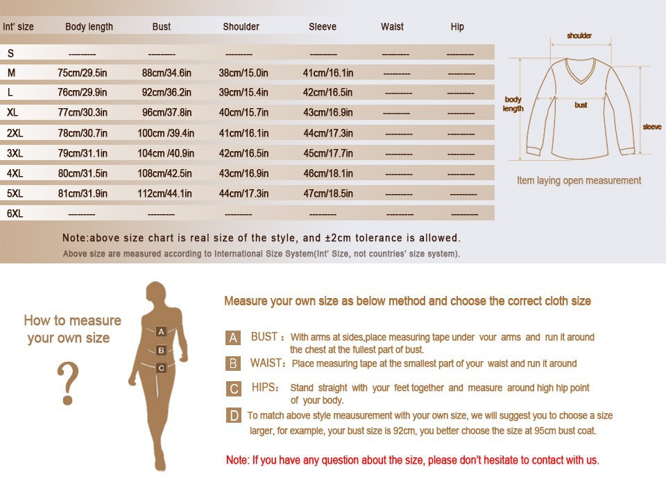 Real measurement of the style (the same as above chart 1, for non-English Countries), please always buy the goods according to the below and your real body size.