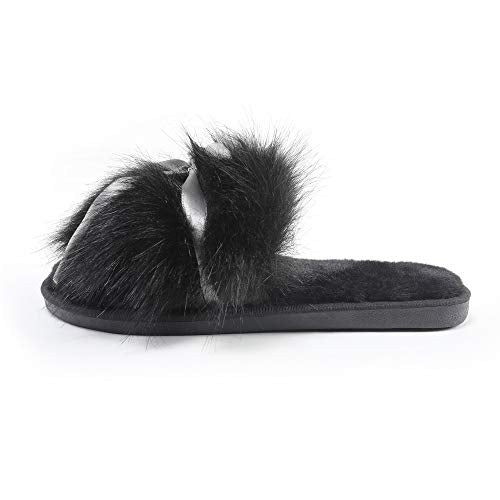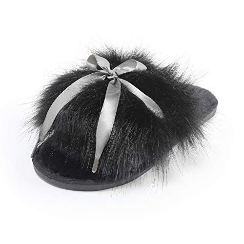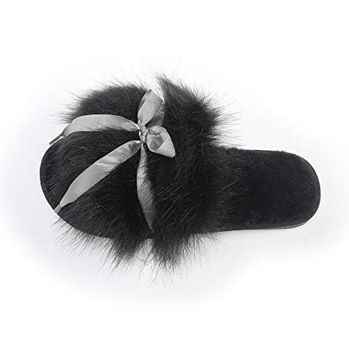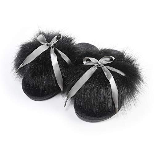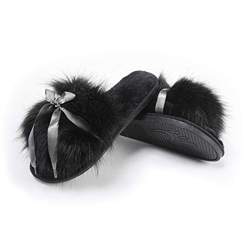 - FUZZY SLIPPER SHOE - Fluffy & fashionable women house slipper with two styles of open-toe and closed-toe; The elegent bow makes the flat slipper slide stylish and cute.