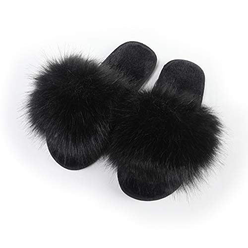 - ANTISKID & DURABIE - The rubber outsole of the women's fur slipper slide provides non-skid traction and durable support no matter indoor & outdoor. So this comfy and safe house slipper is also suitable for the elderly.