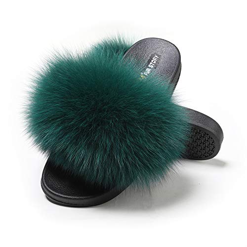 - These women's fur slides are suitable for indoor, outdoor, and general lounging. This is a great fur slippers for everyone.Our fox fur slide sandals can be great for wear it from spring to autumn.