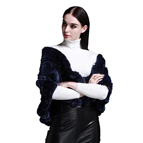 Fur Story Women's Fur Wrap with Rabbit Fur Shawl Cape for Winter
