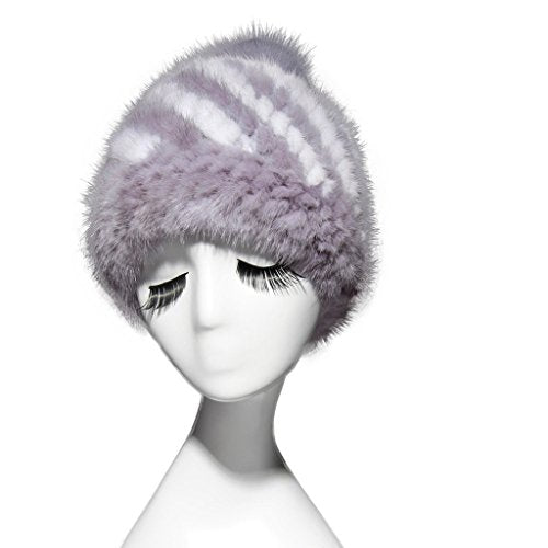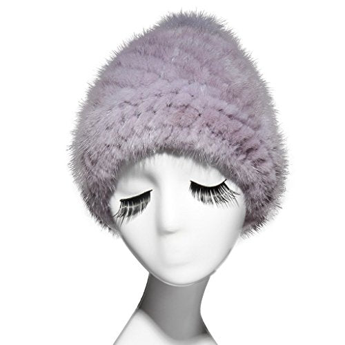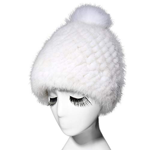 Fur Story Women's Knitted Real Mink Fur Beanie Hat with Fox Fur Pom Pom Skullies Hat