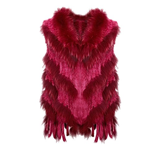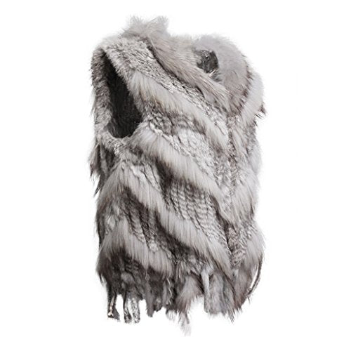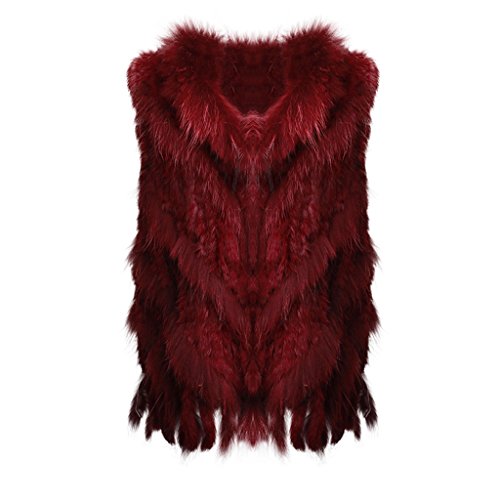 fur story Women's Knitted Real Rabbit Fur Vest with Raccoon Fur Collar Thick Warm Vest Sleeveless