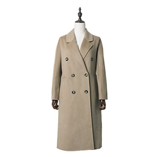 Fur Story Women's Long Double Faced Cashmere Coat Handmade Fashion Ladies Double Breasted Coat