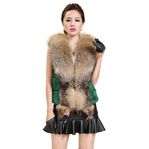 Fur Story Women's Short Real Rabbit Fur Vest with Raccoon Fur Collar