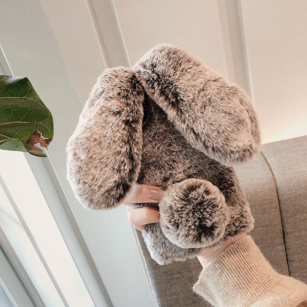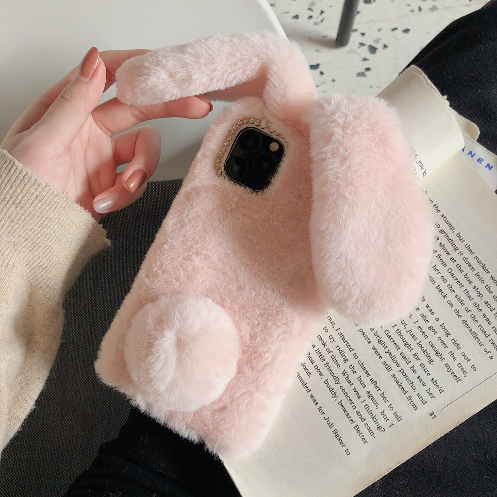 ❥ Faux Fur Case With furry 3D bunny ears and tail design and sparkly glittered rhinestone design makes your phone fashionable and eye-catching, this lovely plush case is a best gift for girls women.
