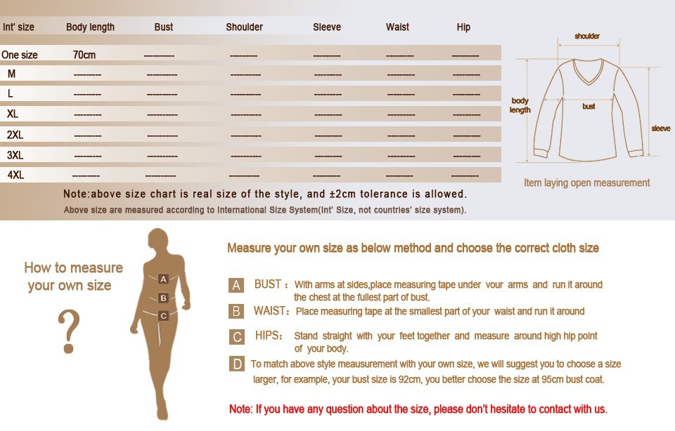 Real measurement of the style (the same as above chart 1, for non-English Countries), please always buy the goods according to the below and your real body size.