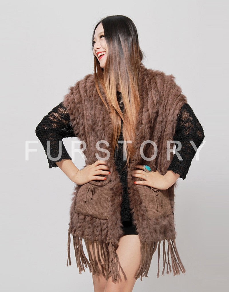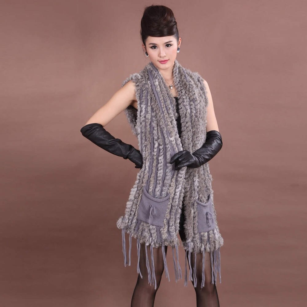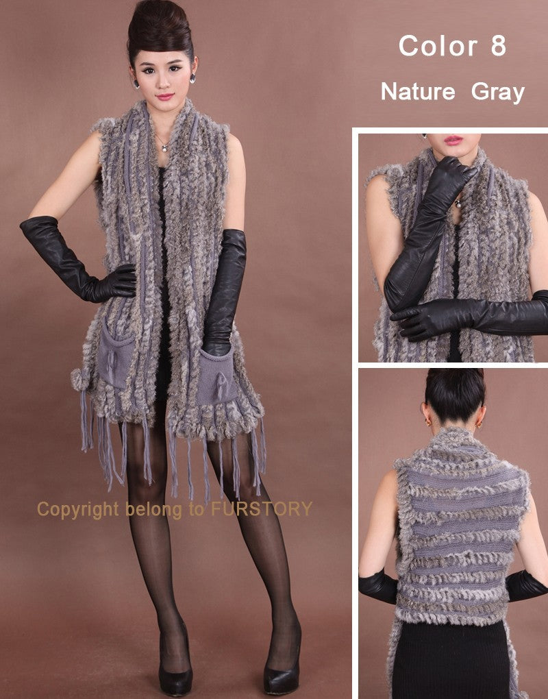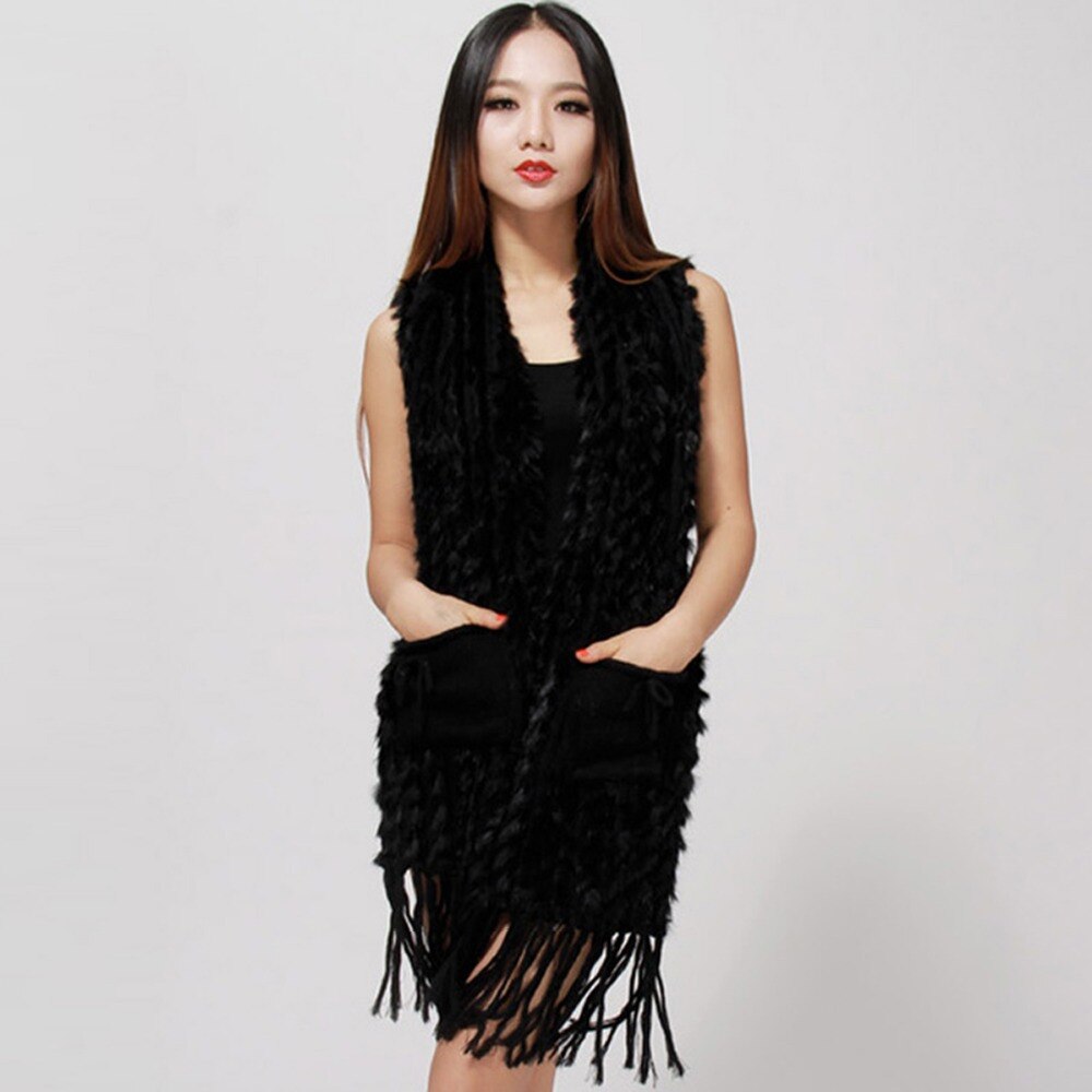 Knitted Natural Rabbit Fur Vest Double Wear Design Spring Autumn Tunic Waistcoat