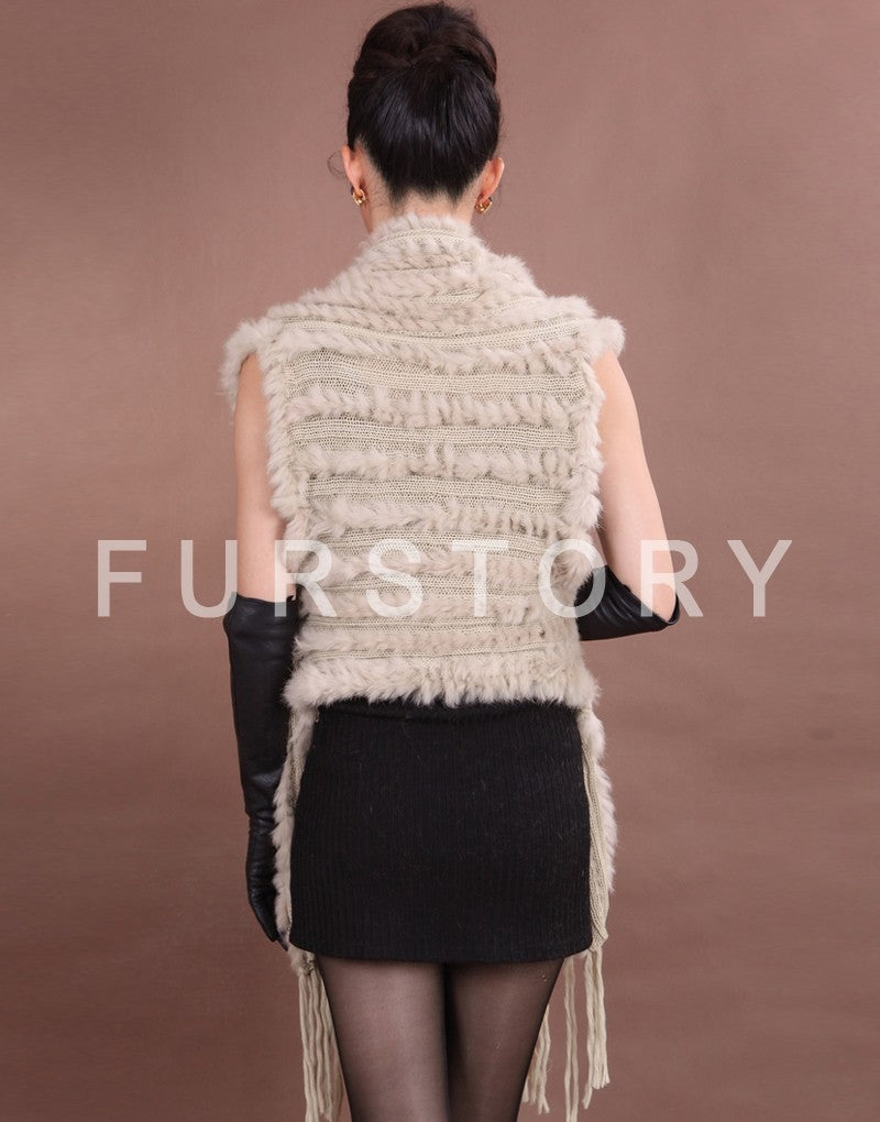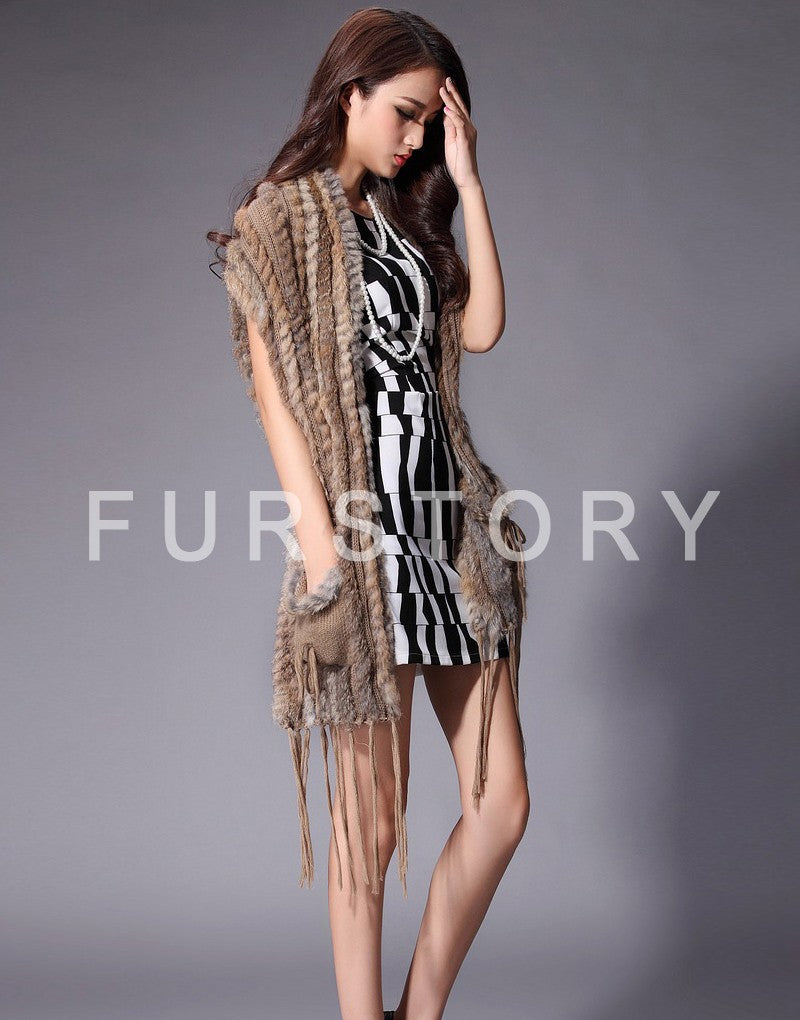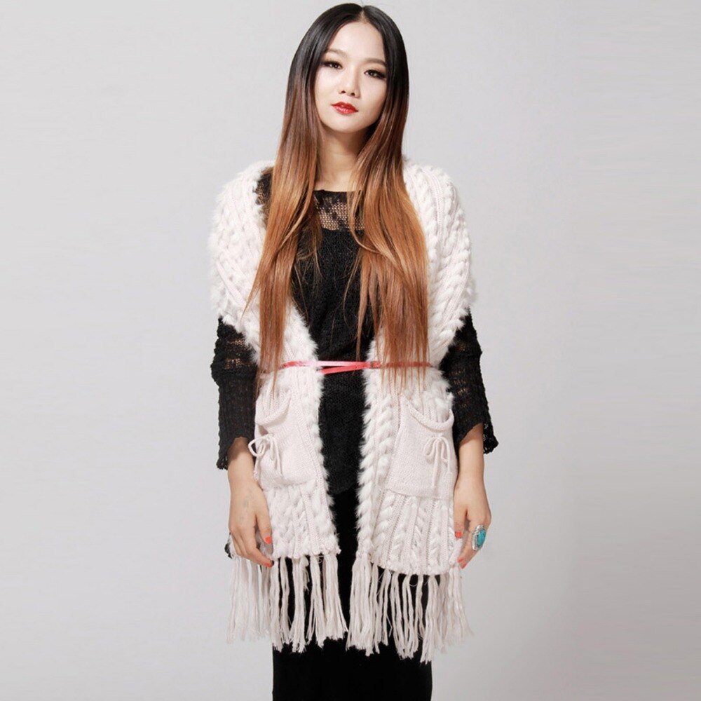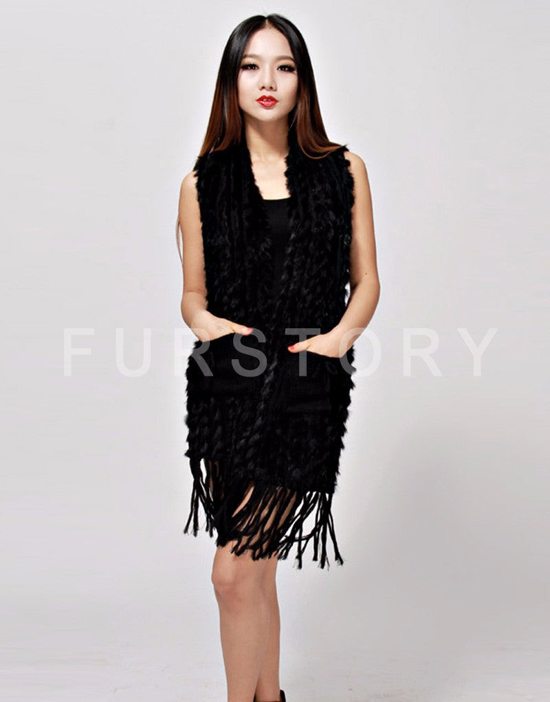 Knitted Natural Rabbit Fur Vest Double Wear Design Spring Autumn Tunic Waistcoat