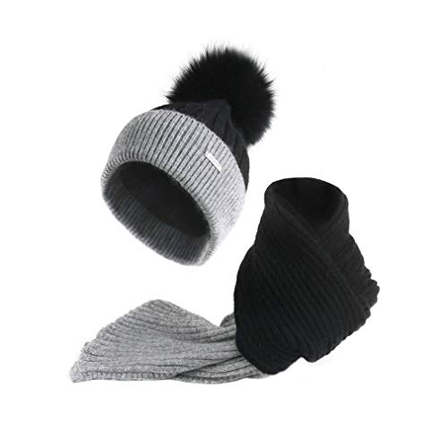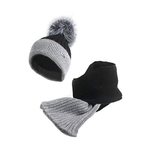 Pilipala Kids Winter Knitted Hat Pom Pom Beanie Circle Scarf Boys Girls Soft Warm Cap Fleece Toddler Earflap
