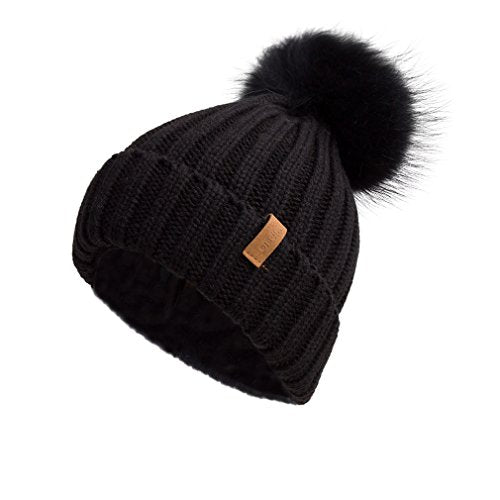 Pilipala Womens Knit Beanies Hats with Fur Pom Bobble Hat Skull Cap Cable Beanie for Women