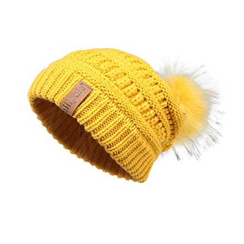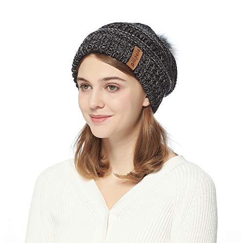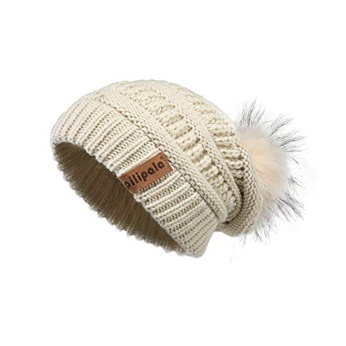 Pilipala Womens Winter Knit Beanie Hat Slouchy Warm Pom Pom Hat Faux Fur Caps for Women Ladies Girls