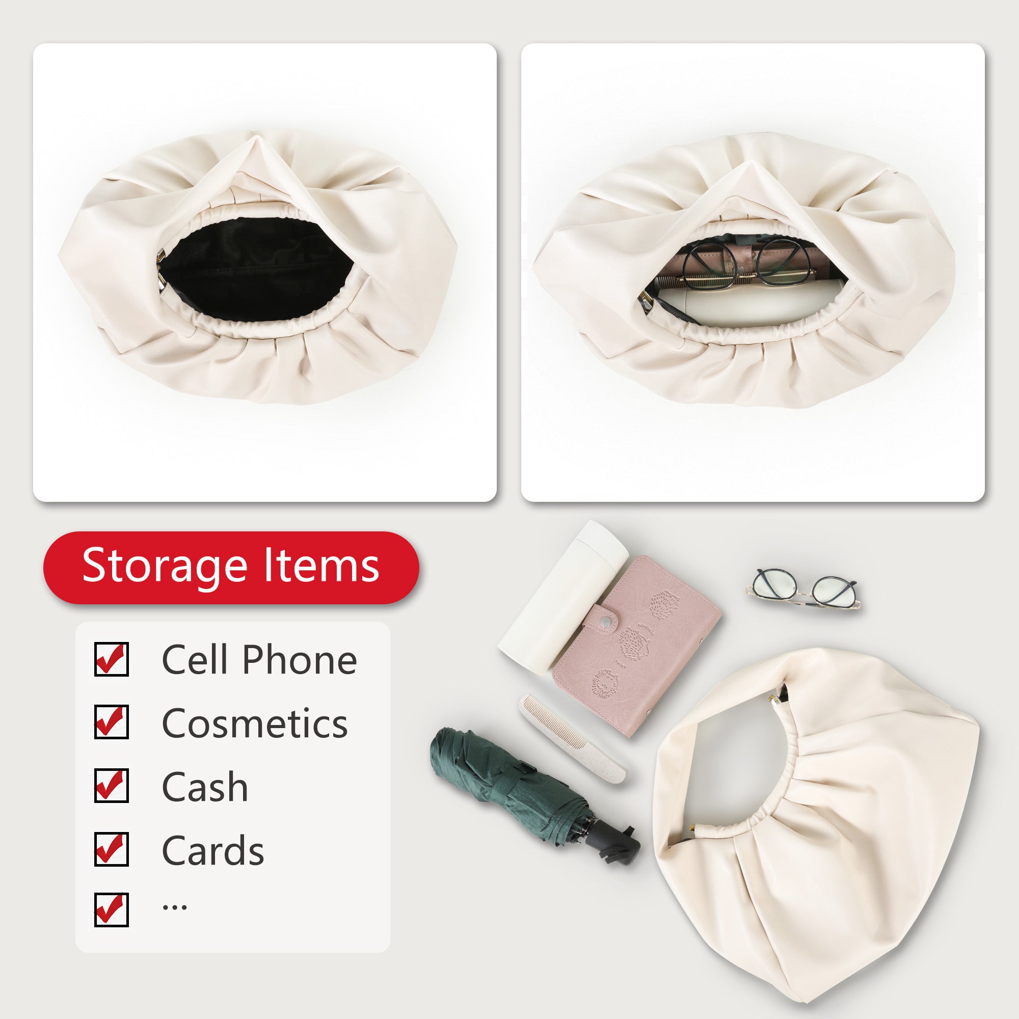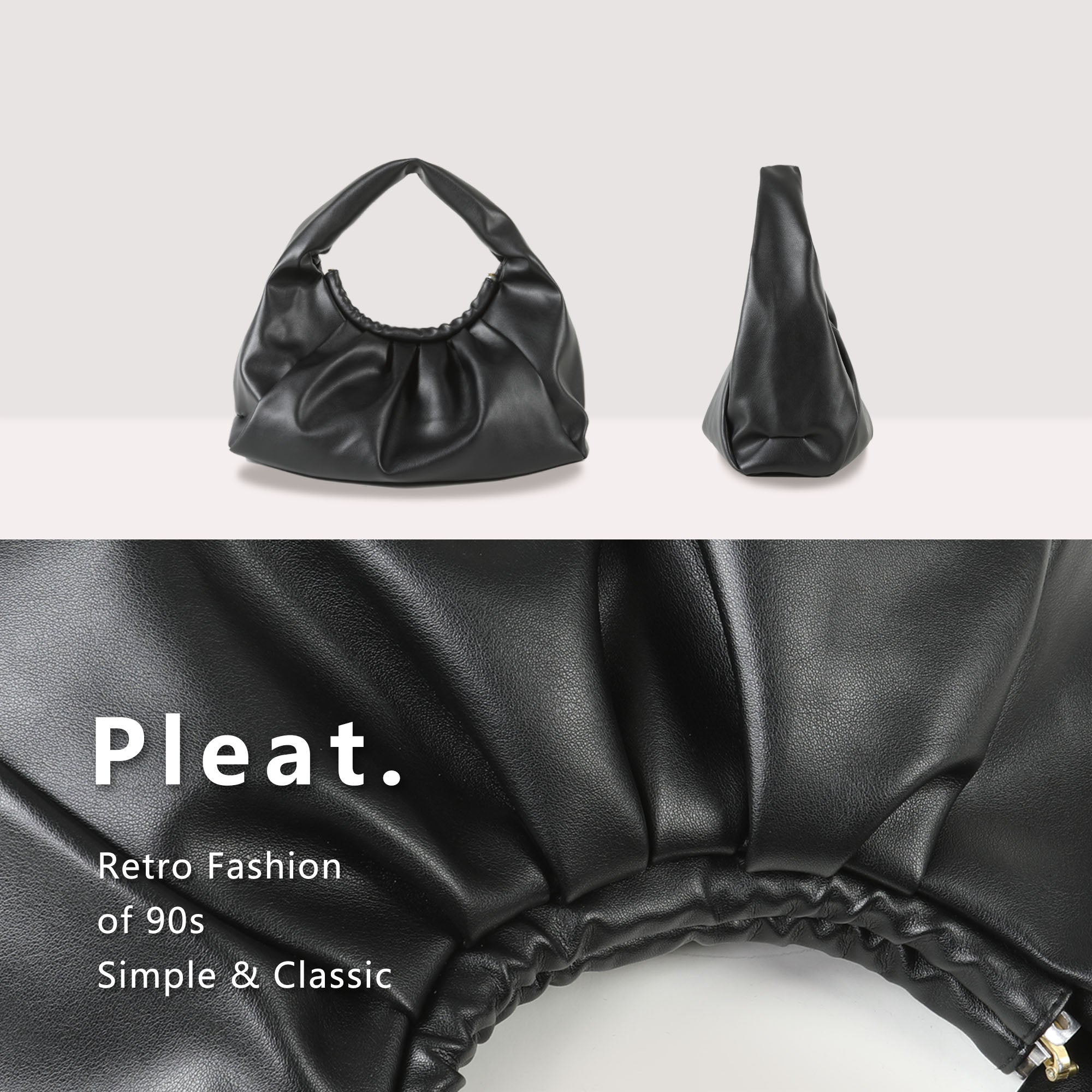 • ➤CLASSIC PLEATED DESIGN --- With a pleated design, this hobo handbag for women reinvents the classic trend with a simple, elegant look. The shoulder straps extend directly from the body of the bag, integrated shaped, simple and stylish. The body of the bag is similar to the dumpling, cute and full of retro charm.