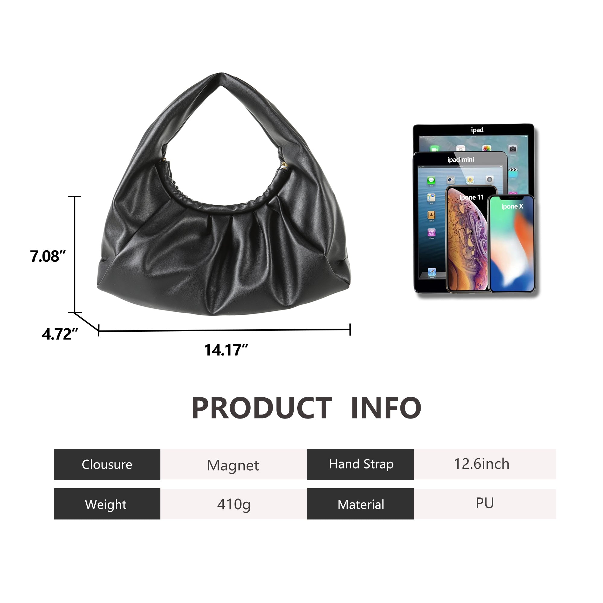 • ➤MINIMALIST STRUCTURE --- The structure of this hobo bag is very simple, 1 fixed strap, 1 magnetic closure, 1 main compartment, and 1 zipper pocket inside. It is a must-have bag style for those who advocate fashion and simplicity.
