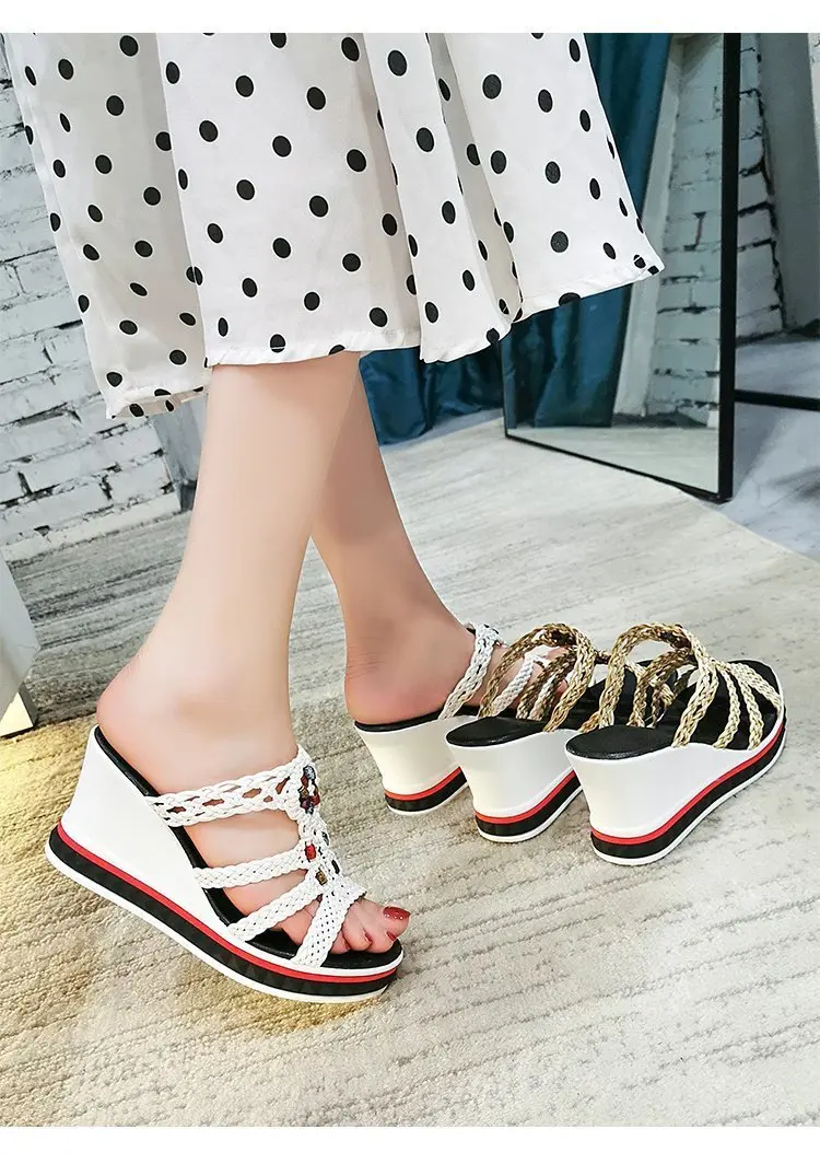 Sandals women's high-heeled wedge-heel platform non-slip outer wear women's sandals FS21S45