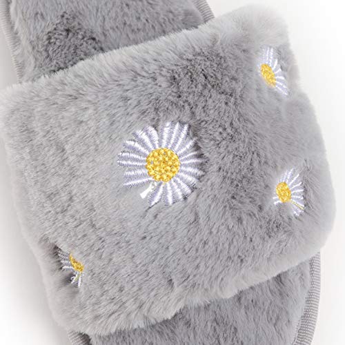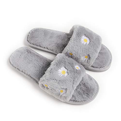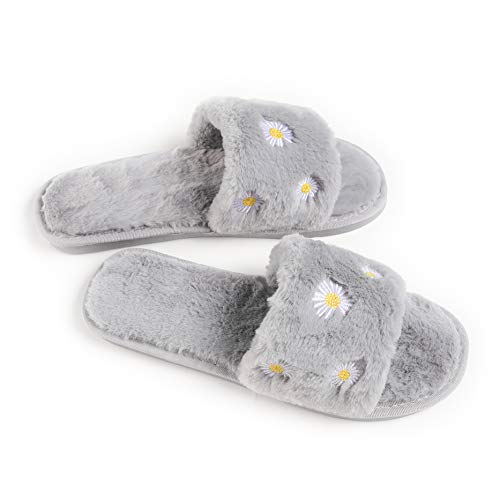 - ★ MATERIAL - Faux fur.They feature an open-toe design and fuzzy faux fur that makes them warm, soft and relaxing. It's suitable for most seasons.