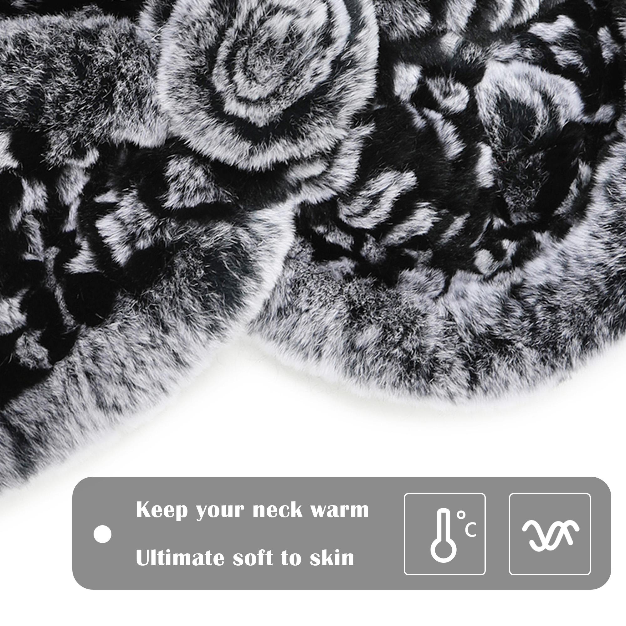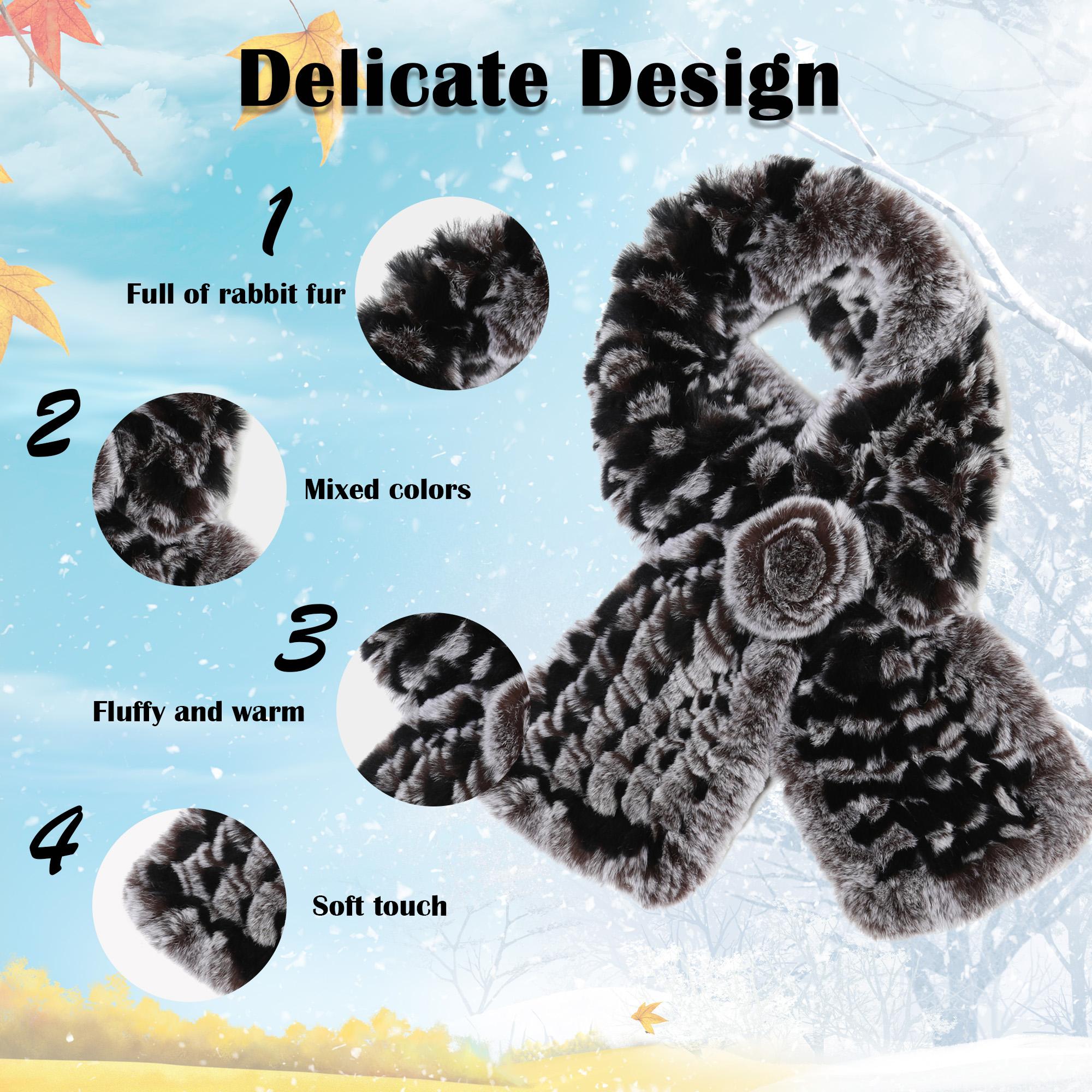 Crochet knit scarf:The flower on the fur scarf adds a feeling of luxury,Slip into the soft warmth and beauty of our real rabbit fur scarves. This luxurious fox fur scarf adds elegance to your outfit.