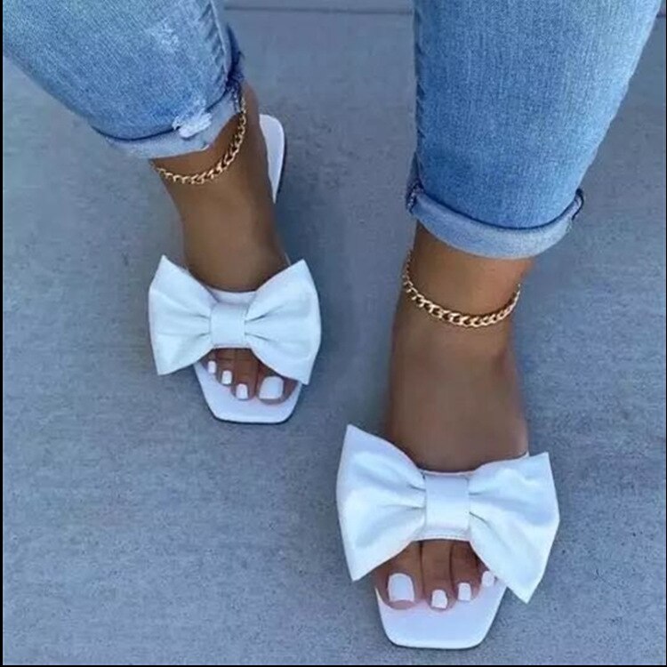Women's shoes with bow knot square head low-heel flip-flops women sandals FS21S51