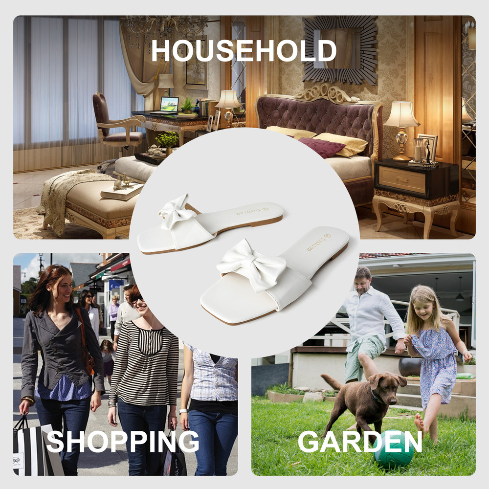 Women's Slippers with Bow Knot Square Head Low-heel Flip-flops Women Sandals FS21S51A